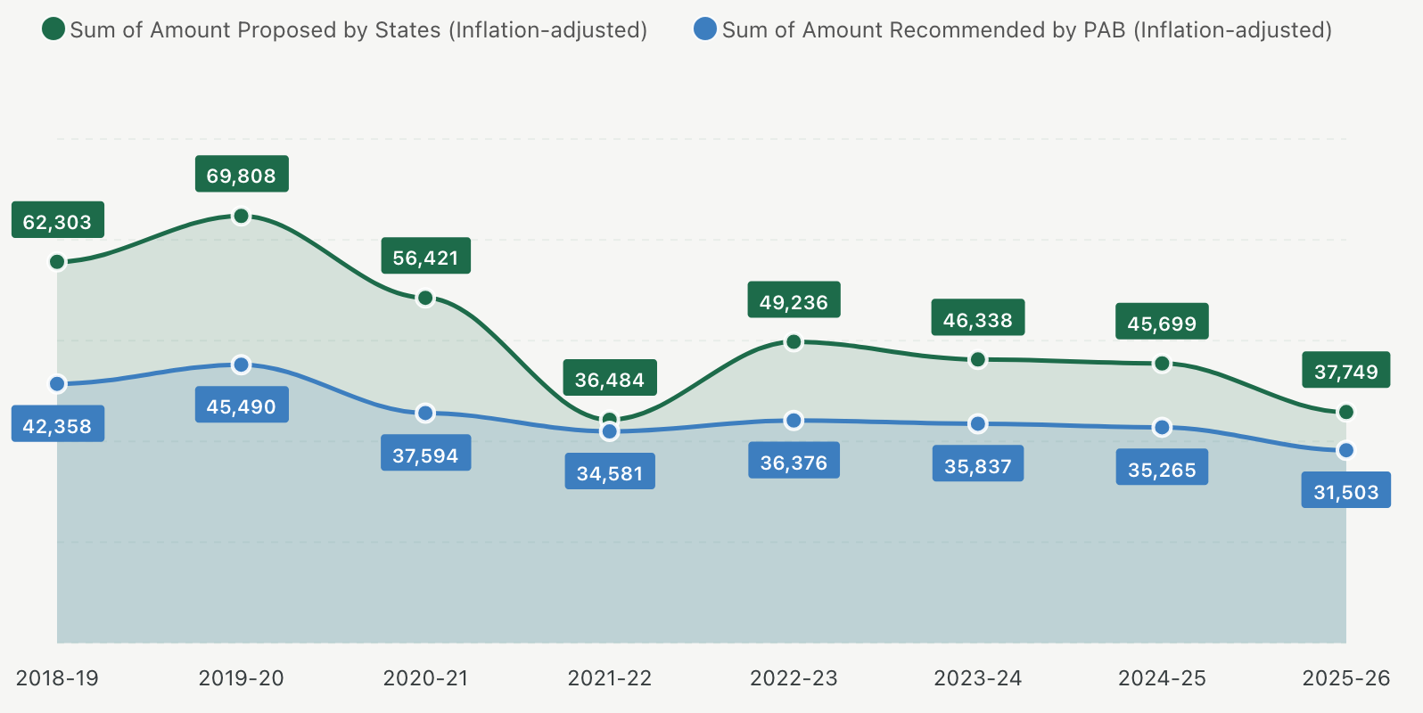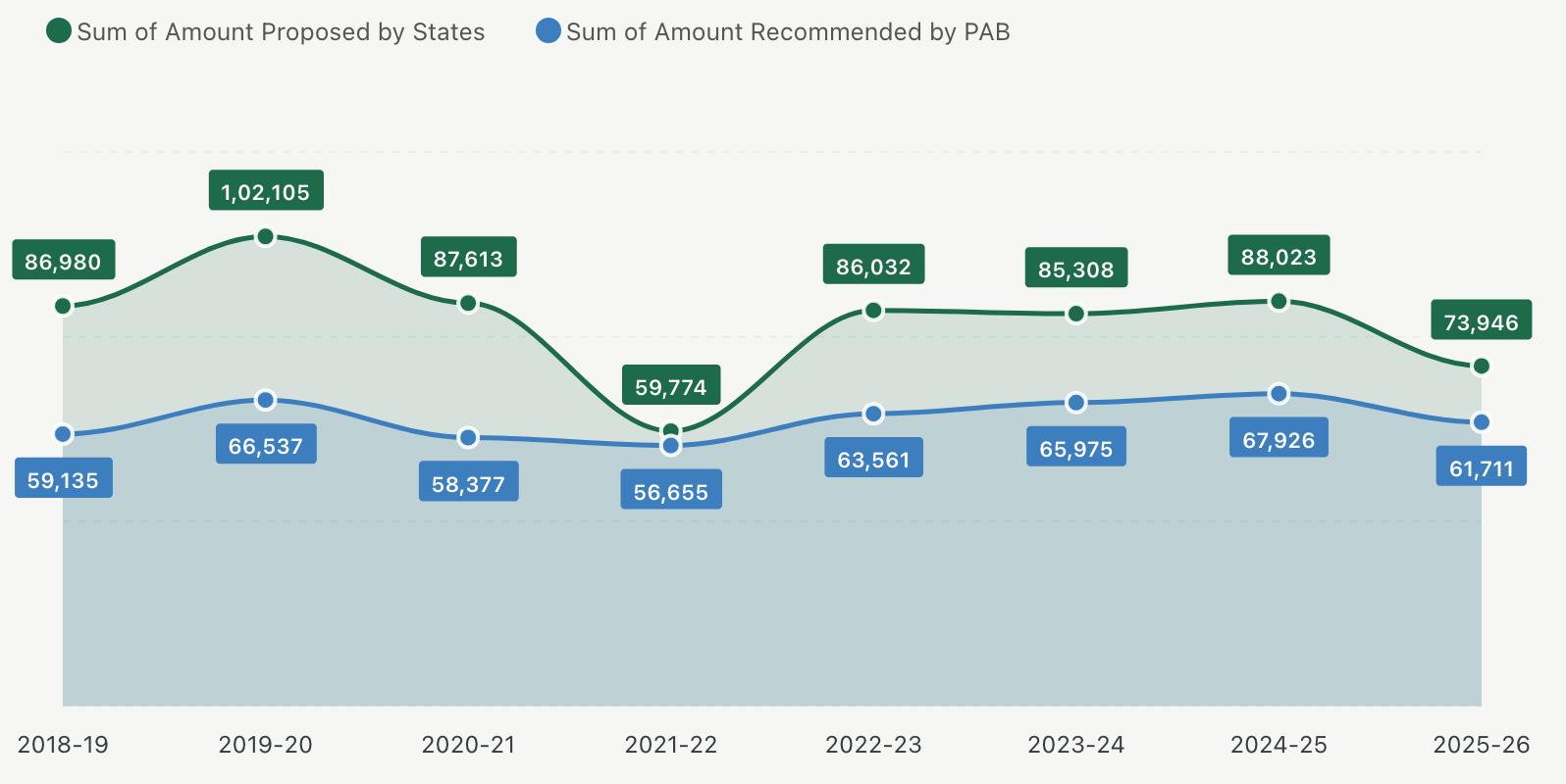Even as states propose widely varying budgets each year, the Project Approval Board’s recommendations remain relatively stable, hovering near ₹60,000 crore.